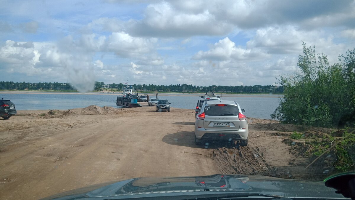вторая понтонная переправа, у поселка Ясный (кстати видно, что её уже начинает заливать, ибо было много дождей, вода в Пинеге поднялась сильно; я успел проскочить, и вечером эту переправу размыло, починили только через дня 3)